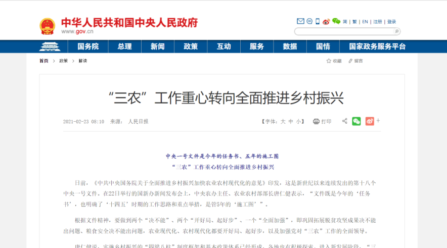 当前,我国正处于改革发展和经济转型升级的关键时期, “三农”工作重心已历史性转向全面推进乡村振兴,坚持农业农村优先发展,加快推进农业现代化。